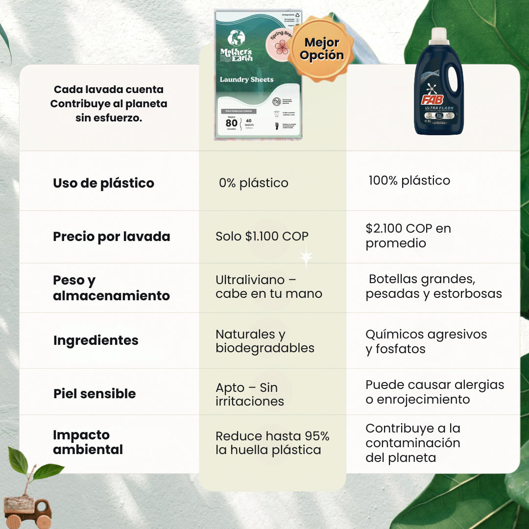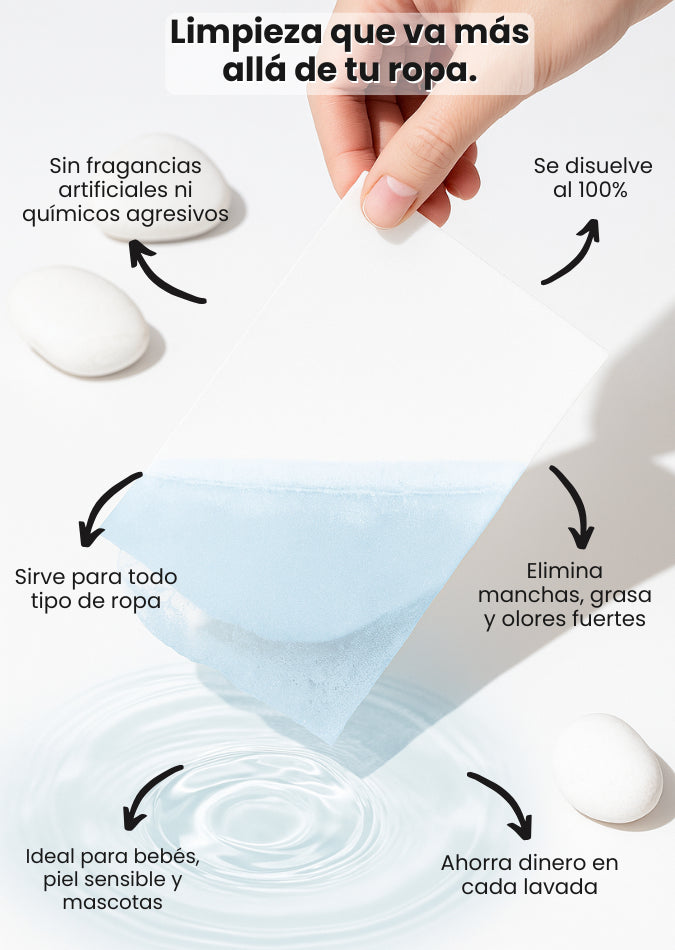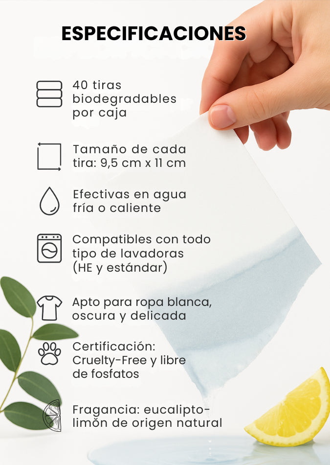 ¡Sí! Cada hoja está ultra concentrada y diseñada para eliminar manchas, malos olores y grasa, incluso en agua fría. Tiene la misma potencia que los detergentes tradicionales, pero sin químicos agresivos ni residuos.