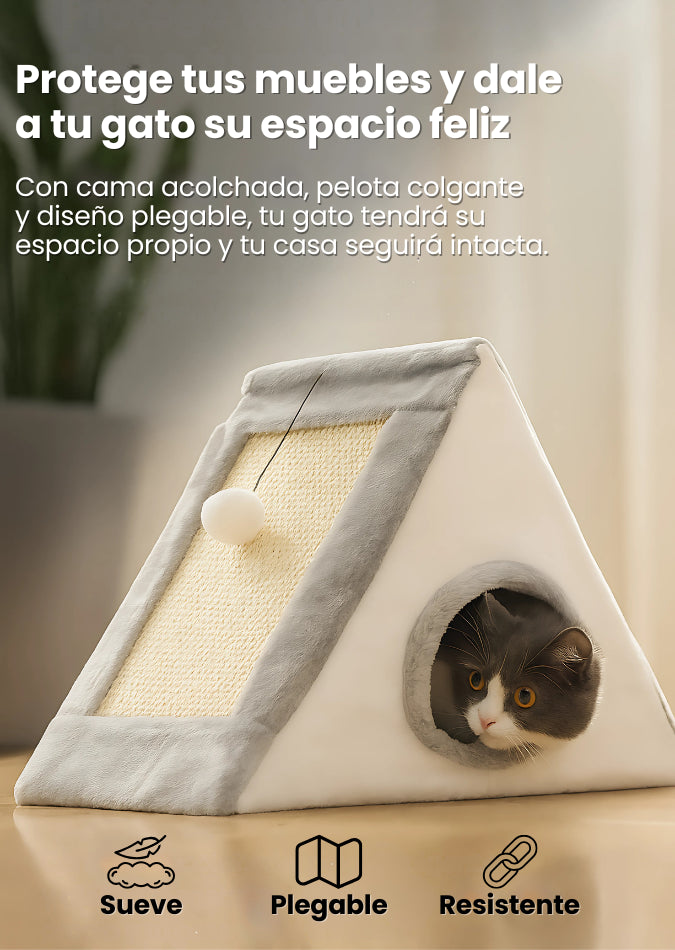SoftClaw House™ está fabricado con cartón corrugado de alta resistencia para rascar, felpa acolchada y suave en la cama y estructura plegable. Son materiales seguros, cómodos y duraderos para tu gato.